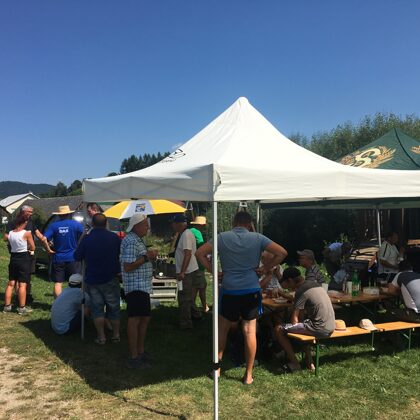 Na miesto sme dorazili 10:30 hod, čo bol skutočne super výkon. Toto miesto je význačné tým, že v jeho blízkosti dňa 1. septembra roku 1944, v nočných hodinách, havarovalo sovietske lietadlo – bombardér Iljušin II - 4, ktoré pilotoval letec Eugenij Ivanovič Archipov. Viacej informácií o páde bombardéra nájdete tu. Krátku prestávku sme si spestrili hraním na Vasiľvou trembitu. Je to ukrajinský dychový nástroj z dreva, ktorý je vyrobený z dlhého rovného kusu borovice alebo smreku (najlepšie takého, ktorý bol zasiahnutý bleskom).